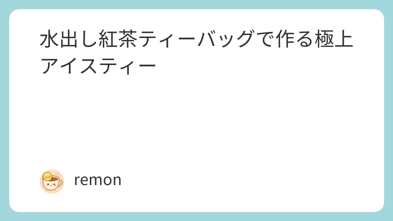 水出し紅茶ティーバッグで作る極上アイスティー ─ 本記事の狙いと価値(紅茶 ティーバッグ)
